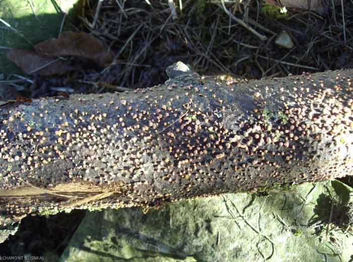 Verticillium albo-atrum ou V. dahliae agents de trachéomycose ou verticilliose provoquent un flétrissement rapide des rameaux, alors que Armillaria mellea agent de pourridié induit un dessèchement brutal des jeunes arbres qui est plus ou moins lent sur arbres adultes.