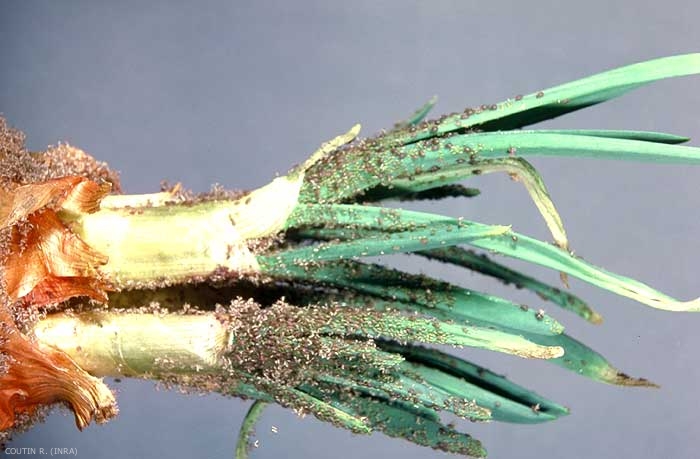Les colonies de pucerons se rencontrent sur les échalotes et divers bulbes en fin de période de conservation ce qui entraîne des malformations de croissance des nouveaux plants (figure 2).