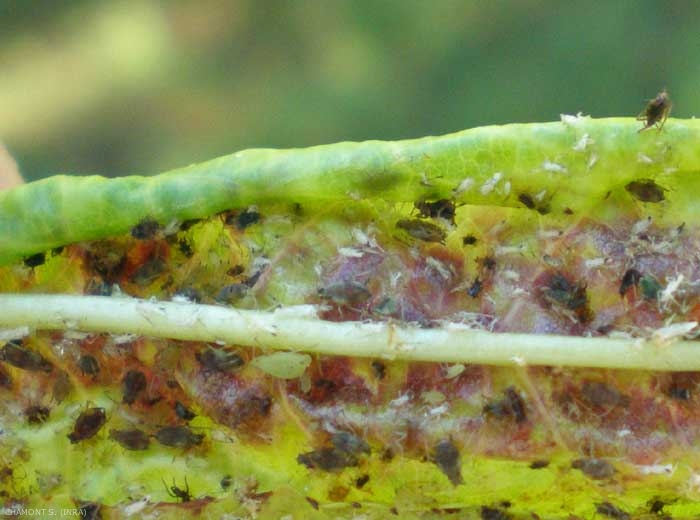 Dans les colonies on note souvent la présence de larves de syrphe, mais pas toujours suffisante pour éliminer les populations du ravageur.