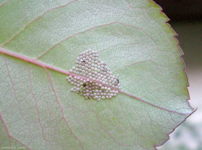 - ooplaque (figure 3) : ponte constituée d'oeufs disposés côte à côte, sur une ou 2 couches.