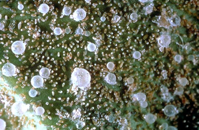 Contrairement à l'aleurode des citrus (Dialeurodes citri) le miellat produit reste adhérent à l'insecte (figure 3), qui le produit en grosses gouttes. Selon les conditions climatiques, il peut y avoir ou non un autre vol en octobre.