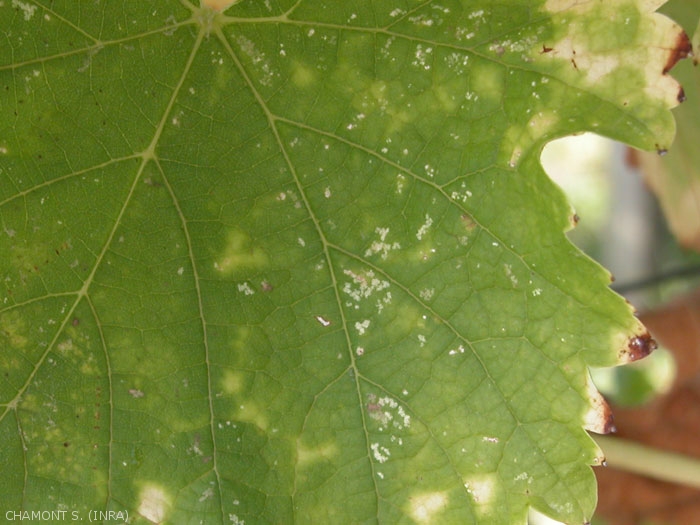 Les dégâts par altération de la surface foliaire photosynthétiquement active, peuvent perturber fortement la maturation des baies et le bon aoûtement des bois.
