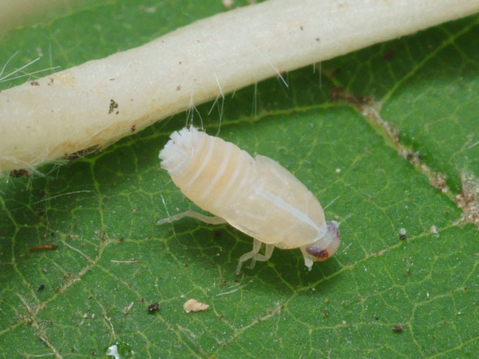 Les larves sont blanches et entourées d'une sécrétion cireuse.
