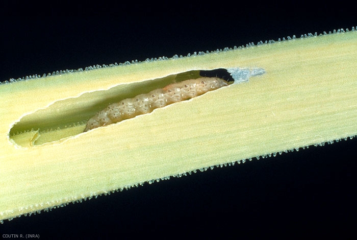 Sur les plantes de 1ère année, les larves se développent aux dépens des feuilles du légume : l'aspect lacéré des poireaux attaqués les rend invendables et les lésions favorisent l'installation de pourriture (figure 3).