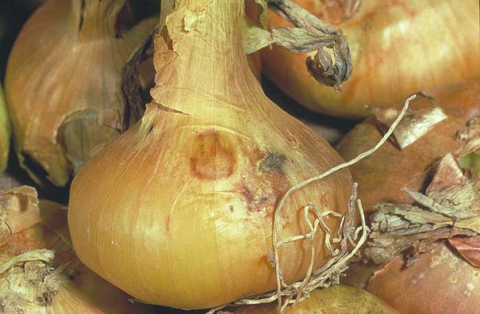 Ce dégât reste mineur, mais si les conditions sont défavorables, l'oignon vieillit trop vite et les larves gagnent le bulbe plus turgescent où elles creusent des galeries (figure 5). Tous les lots contenant des bulbes lésés sont alors refusés à la vente pour "vice caché pouvant nuire à la conservation". Le préjudice est alors très important.