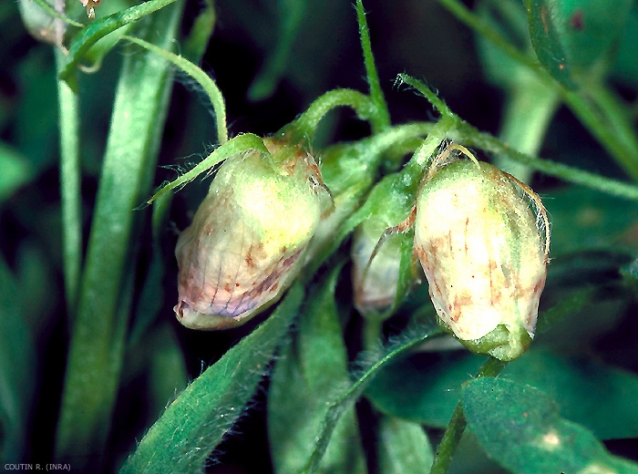 La présence des galles se traduit extérieurement par un gonflement anormal des boutons floraux qui restent définitivement clos sans pouvoir s'épanouir (figure 2).