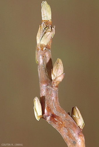 Ils consistent en crispation, gaufrage, torsion et malformation des feuilles accompagnés de torsions des pousses dont la croissance est ralentie (figures 1 et 2). Les dégâts sont graves en pépinière et dans les plantations récentes. Des différences de sensibilité ont été constatées ; ainsi, les cultivars du groupe Goliath sont plus attaqués que d'autres.