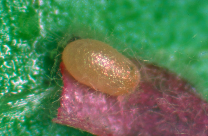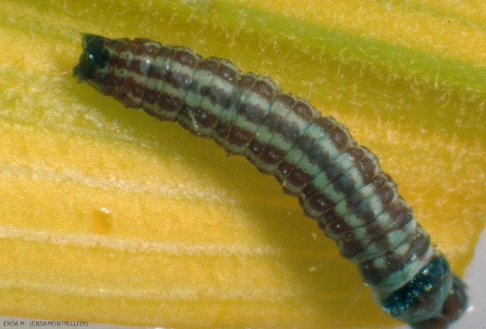 L'oeuf est blanc jaunâtre, très fragile, en forme de gélule d'à peine 1 mm de long (figure 2). La chenille atteint environ 14 mm à son complet développement.