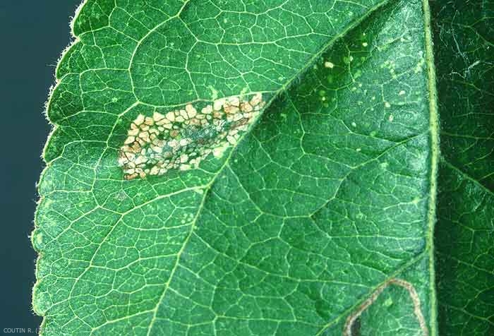 Les dégâts sont visibles par transparence à la face supérieure de la feuille sous forme de petites plages blanchâtre (figure 2). Ils sont rarement importants, sauf en cas de pullulation.