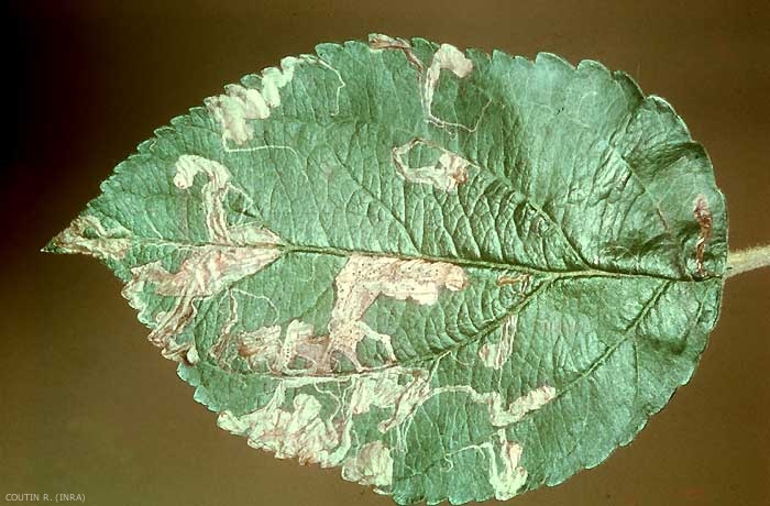 Les dégâts sont généralement peu graves sauf en cas de pullulation massive. Dans ce cas, les nombreuses mines qui parcourent la feuille entravent l'assimilation chlorophyllienne et provoquent son dessèchement (figure 2). La feuille brunit et tombe prématurément, ce qui compromet la récolte et l'équilibre physiologique de l'arbre (figure 3).