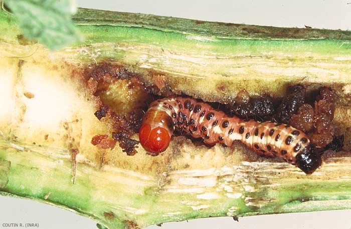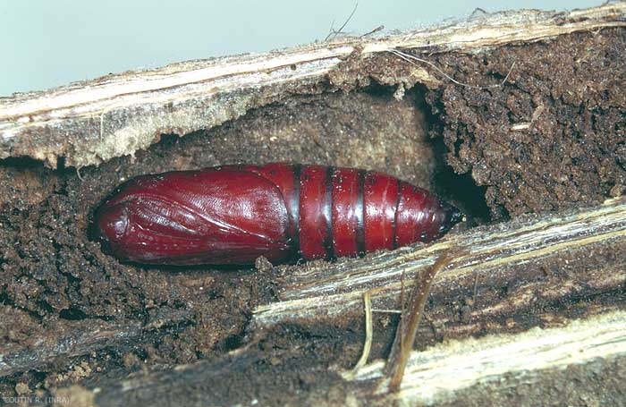 Les chenilles se développent dans la plante jusqu'à leur chrysalidation dans ces mêmes galeries (figure 2).