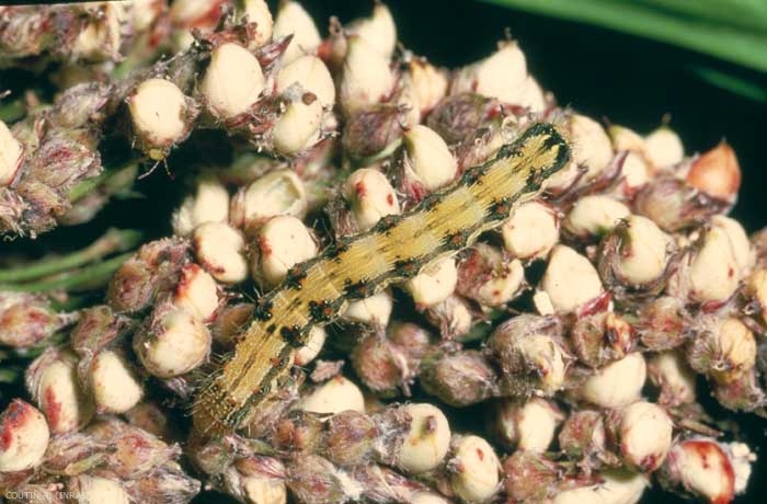 Les dégâts les plus graves sont provoqués par l'attaque des organes reproductifs tels que les boutons et les capitules des fleurs, les capsules, les baies, les inflorescences du maïs.
