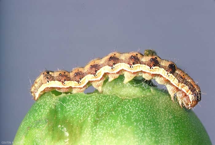 Cette noctuelle, polyphage, est un des principaux ennemis du cotonnier et du maïs. Dans les zones méditerranéennes, elle s'attaque fréquemment aux plantes potagères : tomate (figure), artichaut, légumineuses, cucurbitacées, ainsi qu'au tabac, à l'oeillet (Dianthus sp.), et à des conifères.