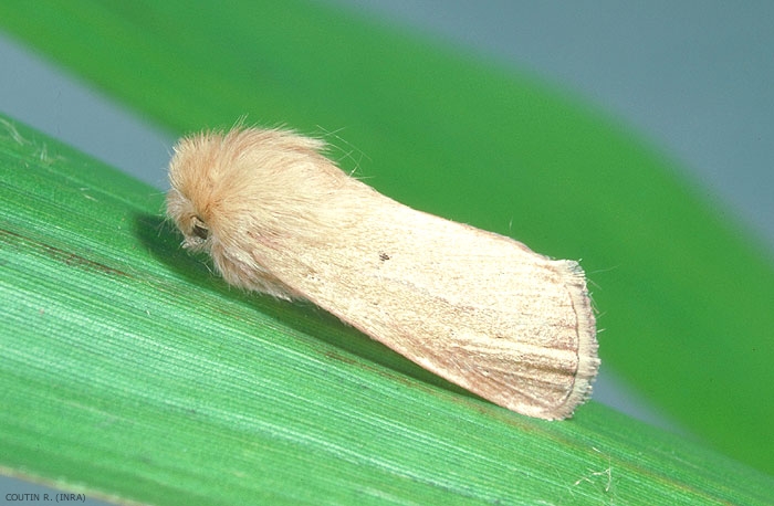 Les oeufs sont sillonné, blanchâtre à la ponte, rose crème ensuite. La chenille, à son complet développement, mesure 3 à 4 cm de long. Sa couleur, variable, va du jaunâtre au brunâtre avec le dos teinté de roux (figure 2). Le caractère morphologique important est la présence de 4 soies par segment, disposées en file sur le 9ème tergite.