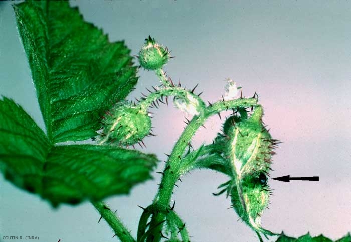 Le framboisier (Rubus idaeus), le fraisier (Fragaria sp.), la ronce (Rubus sp.), le rosier et l'églantier (Rosa spp.) sont les plantes hôtes du coléoptère Anthonomus rubi.