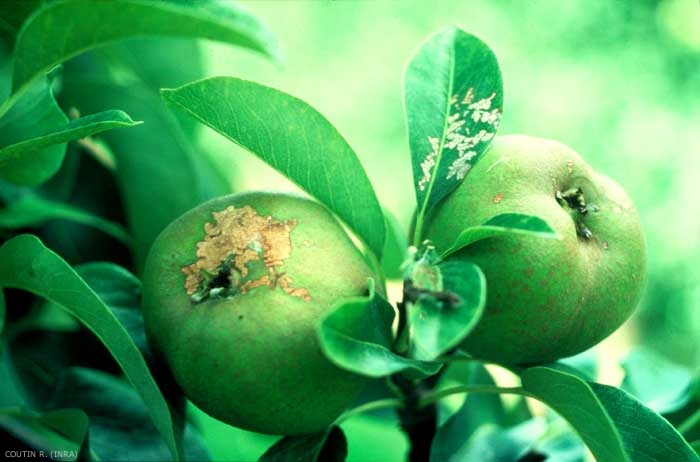 Les hôtes plus sensibles sont, parmi les pommiers (Malus pumila) : Reine des reinettes, Reinette du Canada, Golden Delicious, Delicious rouge et ses mutants et, parmi les poiriers (Pyrus communis) : Williams, Beurré Hardy, Doyenné du Comice et Passe-Crassane.