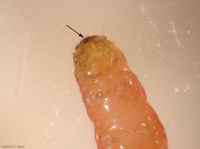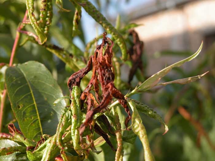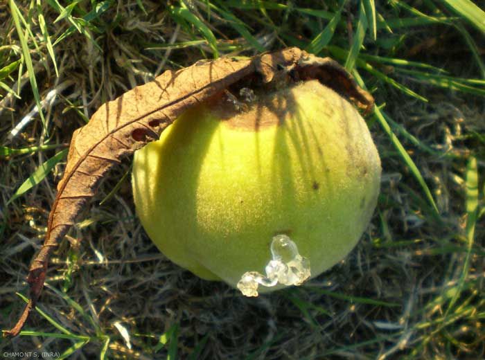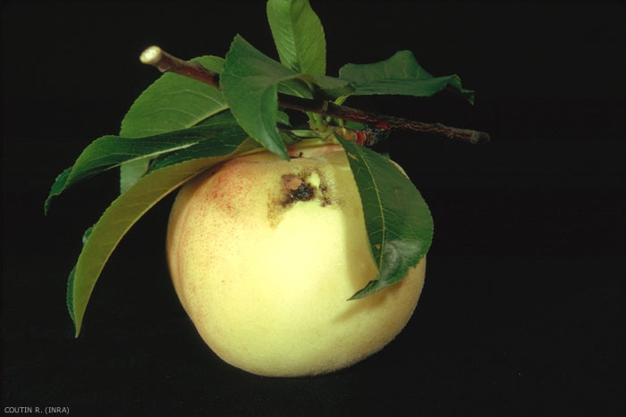 Sur jeunes pousses de pêcher, les dégâts peuvent être importants en pépinière (figure 2). Des dégâts peuvent être occasionnés sur les écussons de greffage en septembre. Les préjudices les plus importants sont dûs aux attaques sur fruits (figure 3). Sur les variétés tardives, les dégâts sont souvent invisibles, la chenille se dirigeant vers le noyau sans perforation visible de l'épiderme.