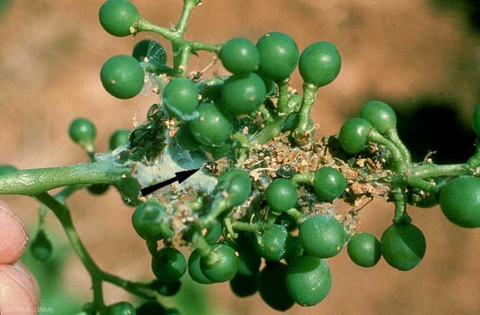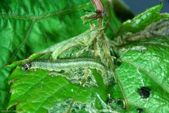 Au printemps, les dégâts peuvent être très importants. Ainsi, elle dévore les bourgeons puis les jeunes feuilles de l'extrémité des rameaux en les maintenant groupés par des fils de soie. Les feuilles de l'extrémité des rameaux de vigne peuvent être totalement dévorées. Elle s'attaque ensuite aux jeunes grappes (figures 3 et 4). Elle mordille également le pétiole des feuilles qui se dessèchent et prennent une teinte roussâtre.