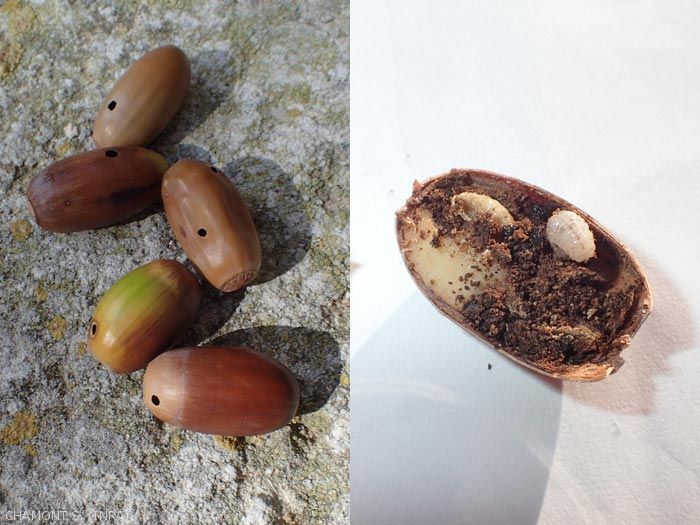 Il y a une génération par an. La larve ayant hiverné en diapause se nymphose fin juin et les adultes apparaissent au début de l'automne de la mi-août à la fin septembre dans le sud de la France. Il s'alimente pendant 1 semaine, puis la femelle pond un ou plusieurs oeufs dans les châtaignes ou les glands. La fécondité moyenne est de 40 oeufs.