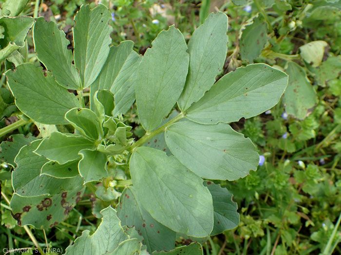Les légumineuses sauvages ou cultivées (Fabaceae) comme la luzerne (Medicago sativa), les pois (Pisum sativum), la fève, le trèfle, la vesce, le haricot et le lotier sont les plantes-hôtes de Sitona lineatus .