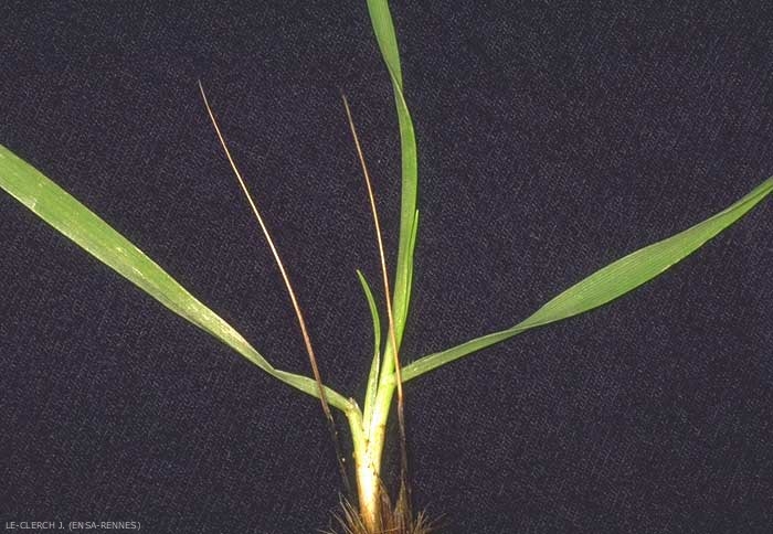 Ligule membraneuse dentée, limbe non auriculé à la base.
