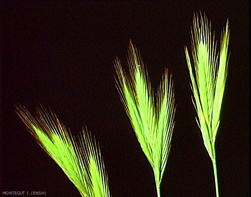 Inflorescence : épi court (5 à 10 cm) raide, sessile, dressé, formé seulement de 1 à 5 épillets rapprochés