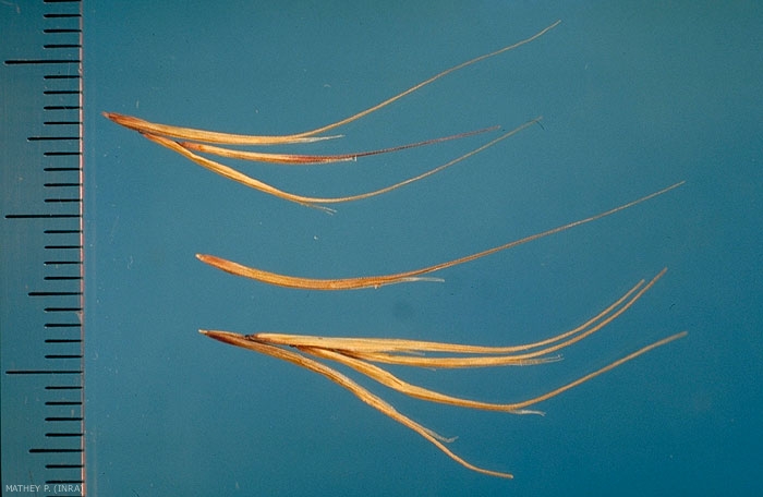 Semence généralement dispersée avec 1 fleur entourée des glumelles. Présence d'une baguette à la base de la glumelle inférieure (lemme)