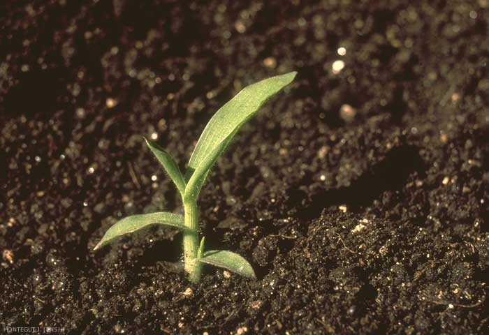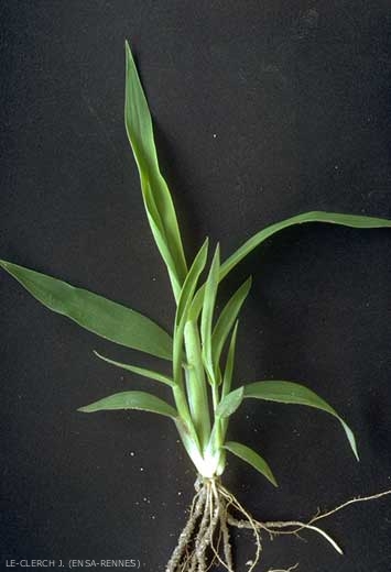 Feuille à forte pilosité (poil moyen de 0,5 mm) généralisée sur tous les organes et constante. Largeur remarquable des limbes (presque 6 mm à la seconde feuille), feuilles assez courtes, souvent ondulées, velue sur la gaine. Gaine verte à rouge violet