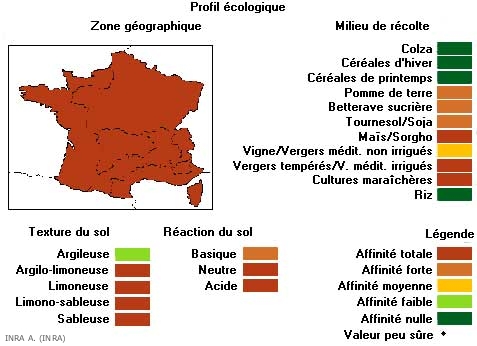 Plante des sols sablonneux, cette adventice est présente dans les cultures dans de nombreux pays d'Europe sauf en Angleterre. En France on la trouve sur tout le territoire et sur de nombreuses cultures (pomme de terre, betterave, tournesol, vergers irrigués, etc.).