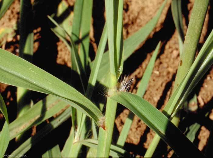 Ligule membraneuse dentée, limbe non auriculé à la base.