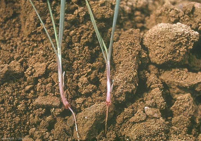 Tige grêle et dressée. Pointe des radicelles remplie d'anthocyanes.