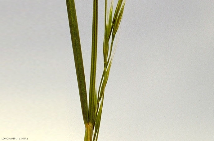 Feuilles jusqu'à la panicule, d'un vert brillant, étroites enroulées ;