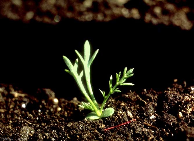 Feuilles inférieures disposées en rosette. Feuilles allongées, plusieurs fois divisées, pennées à segments linéaires très étroits, terminées par un petit mucron