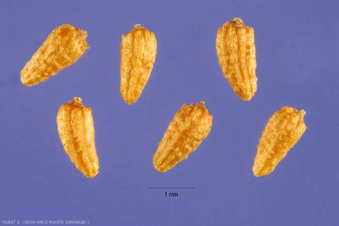 Fruits longs de 1 à 1,5 mm, portent des petits tubercules tout autour et sont munis de 10 cotes longitudinales.