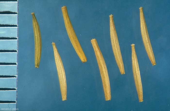 Dimensions : 0,5-0,6 x 4,5-5,0 mm, de même taille que l'aigrette.