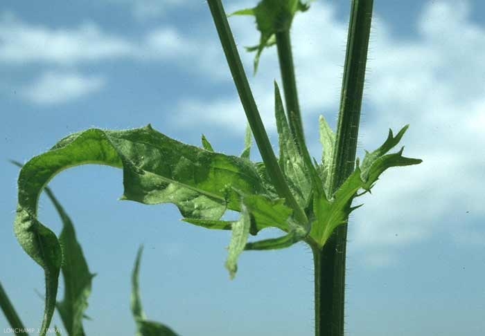 Feuilles presque toutes radicales, pubescentes, oblongues, lancéolées, pennatipartites. Feuilles caulinaires à base en fer de hallebarde, embrassantes, sessiles, dentées