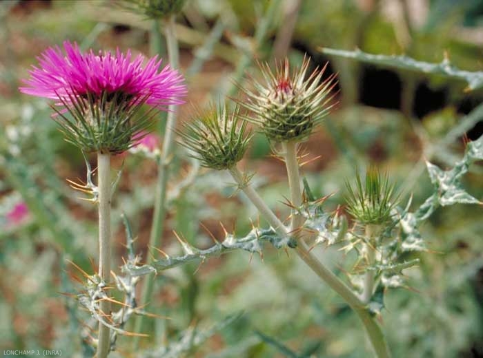 - syn. scientifique : Galactites elegans, Galactites galactites, Centaurea galactites, Cnicus galactites, Calcitrapa galactites, Lupsia galactites