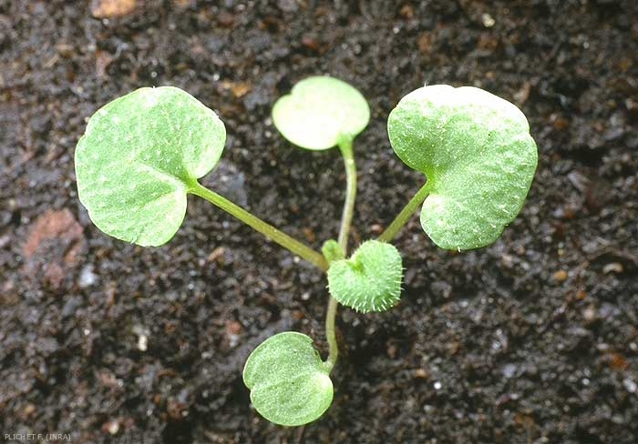 Premières feuilles réniformes, simples, puis feuilles divisées, pennées.