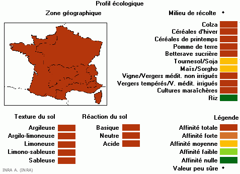 Cette plante commune est originaire de l'Asie et s'est répandue depuis 150 ans dans toute l'Europe. Cette adventice se rencontre en France sur tous types de sols et dans pratiquement toutes les cultures.