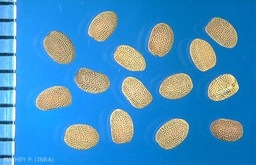 Ornementation : paroi de la graine réticulée à mailles serrées (25 rangées sur 1 face)