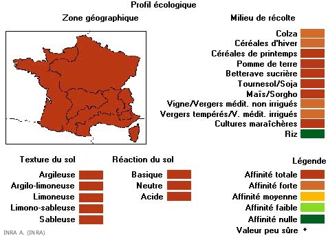 Présente dans toute l'Europe, cette adventice est présente dans toutes les cultures et sur tous les types de sol en France et ailleurs.