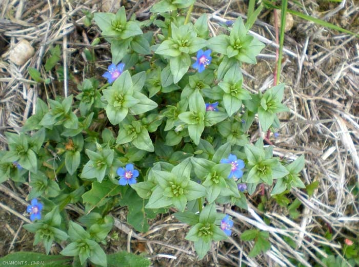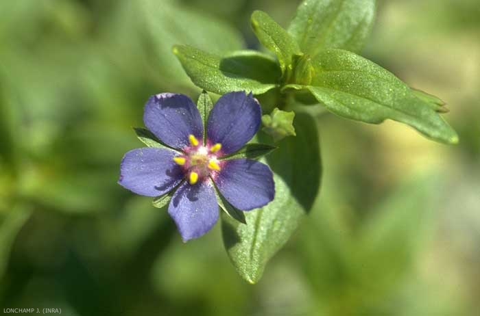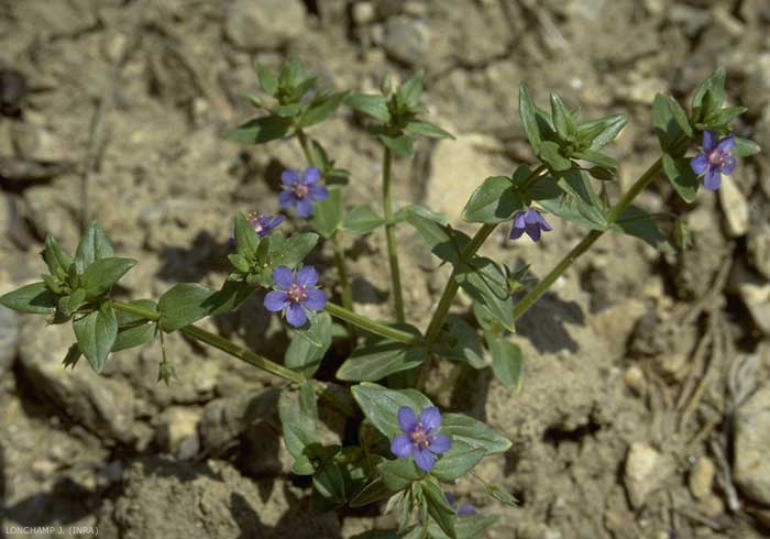 - syn. scientifique : Anagallis foemina, A. arvensis var. caerulea, A. caerulea