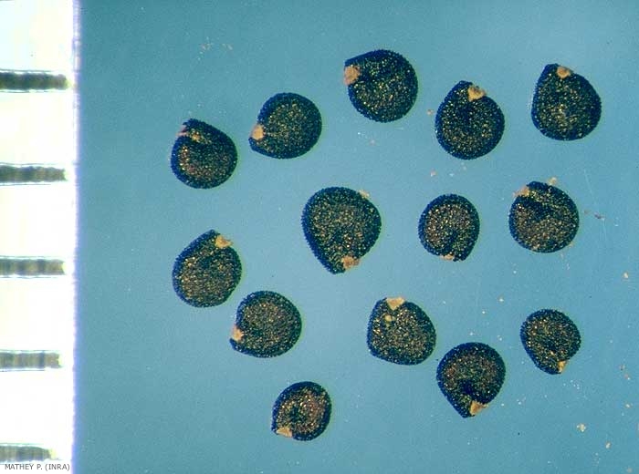 Fruit : capsule (pyxide) ovoïde, s'ouvrant circulairement en travers et contenant de nombreuses graines.