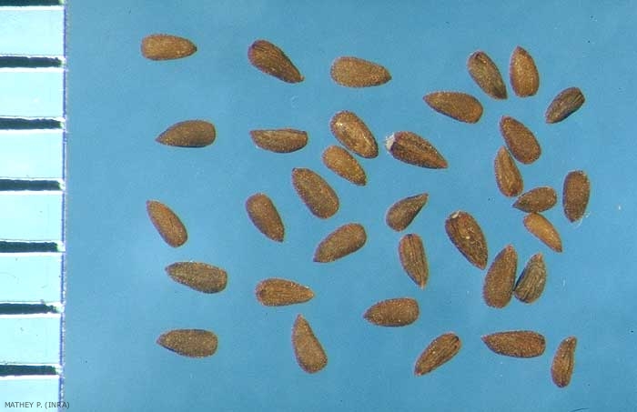 Forme : elliptique à obovale, arrondie à l'apex qui porte l'aigrette fugace, plus ou moins atténuée à la base