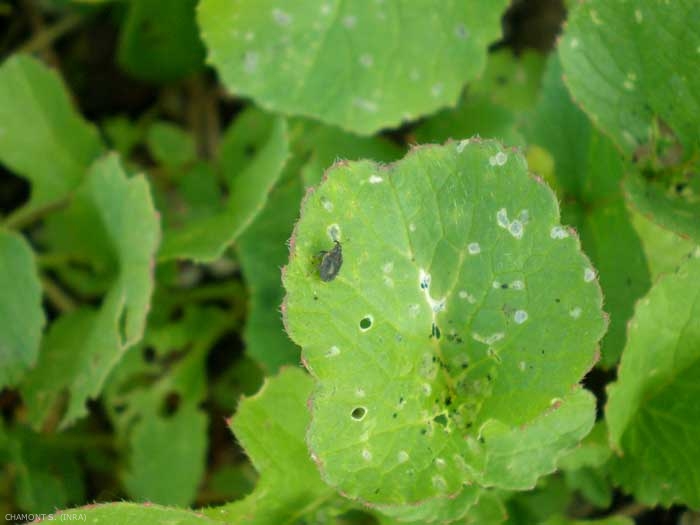 A l'automne après la diapause estivale, les adultes, très discrets, s'envolent et se dirigent vers d'autres parcelles de colza. Ils pondent dans les pétioles entre septembre et mars. Les larves se développent dans les pétioles puis peuvent migrer jusqu'au bourgeon terminal de la plante pendant l'hiver.