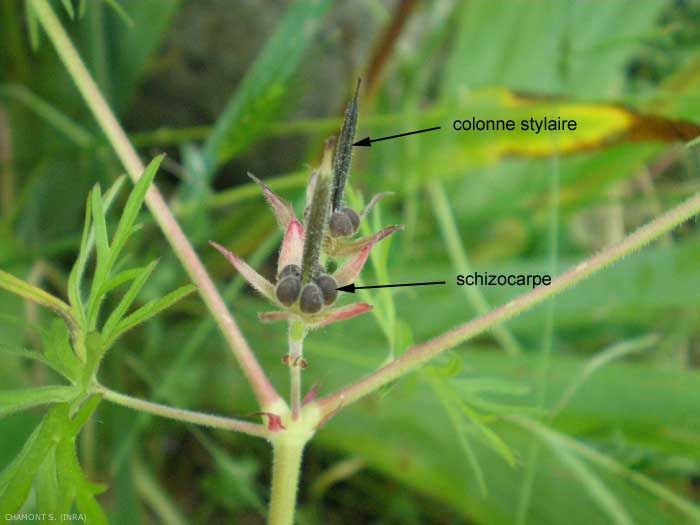 - schizocarpe : fruit composé de plusieurs éléments, i.e. pluriloculaire, dont chaque élément contient une graine (par exemple chez les ombellifères et les géraniacées) et se séparant à maturité (figure 5).