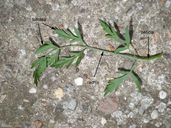 - rachis : continuation du pétiole dans une feuille composée et qui porte soit les folioles soit les ramifications portant des folioles (figure 1).