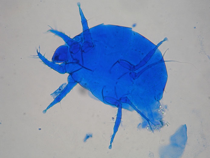 Stades de développement : Quatre stades se succèdent au cours du cycle biologique de cet acarien : œuf, larve, nymphe et adulte. La durée du cycle de l’œuf à l’adulte est de 4 à 5 jours en périodes chaudes, elle est supérieure à 7 voire 10 jours si les températures sont plus fraîches.