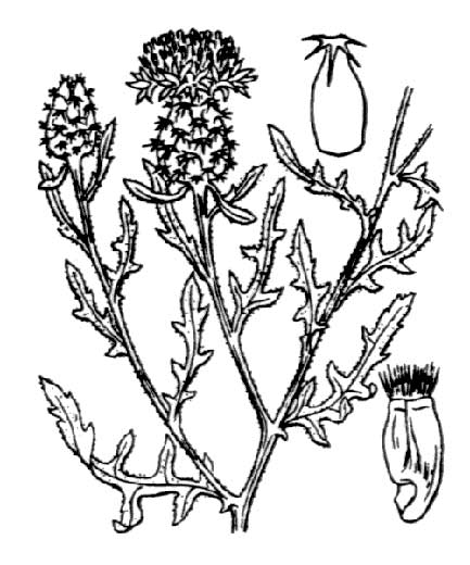 | Dans ce genre, les feuilles médianes et supérieures sont à limbe décurrent sur la tige. Les bractées de l'involucre sont plus ou moins épineuses. Les fleurs périphériques sont rayonnantes, tubulées et à corolle de plus de 6 mm. | ||||