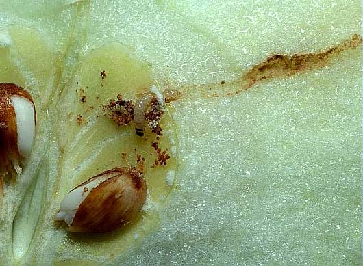 • Les parties attaquées par le ver doivent être supprimées, le reste de la chair reste consommable.